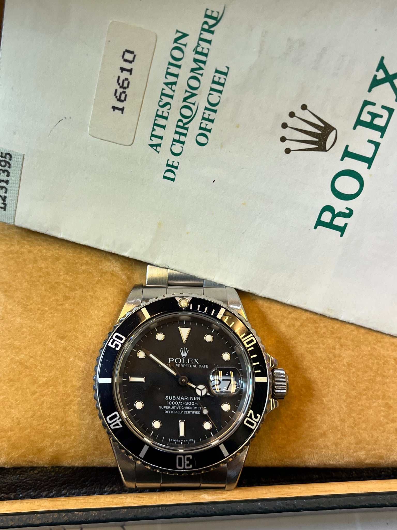 The original classic Submariner. No mess, no fuss - time, date and perfect good looks. This 1989 stainless and black face sub comes with box and papers